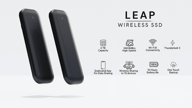 Leap Wireless SSD is the ultimate storage solution for those, who demand speed and convenience. Leap is wireless, superfast and ultraportable. This SSD has two types of interface, which are Thunderbolt 3 and Wi-Fi 6. Thunderbolt 3 provides a data transmission speed of 2400mb/s and 900mb/s, while using a wireless connection.