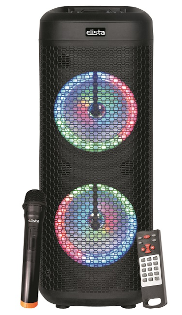 The ELS T-5000 Blast TUFB has a total power output of 40W, with an 8″ x 2 subwoofer and 1x tweeter for immersive audio. It features Bluetooth v5.0 for wireless connectivity up to 10m and a 5200mAh battery for up to 3 hours of playback at 75% volume. The controls include a Wireless MIC with volume and echo control, LED display, rotary volume controls, remote handset, and mobile phone holder.